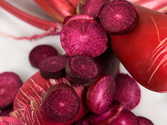Los foliolos se caracterizan por su forma lanceolada puntiaguda y su superficie dentada. Las hojas de la raíz roja tienen forma lanceolada, lineal-lanceolada, ocasionalmente lineal simple. Alcanzan de 60 a 150 mm de longitud y varían de 7 a 12 mm de anchura. El borde superior de la hoja es verde oscuro, con un brillo característico, y el plano inferior es azulado o azul verdoso. Los pecíolos son de color rojo-amarillo y su longitud es de unos 10 mm.