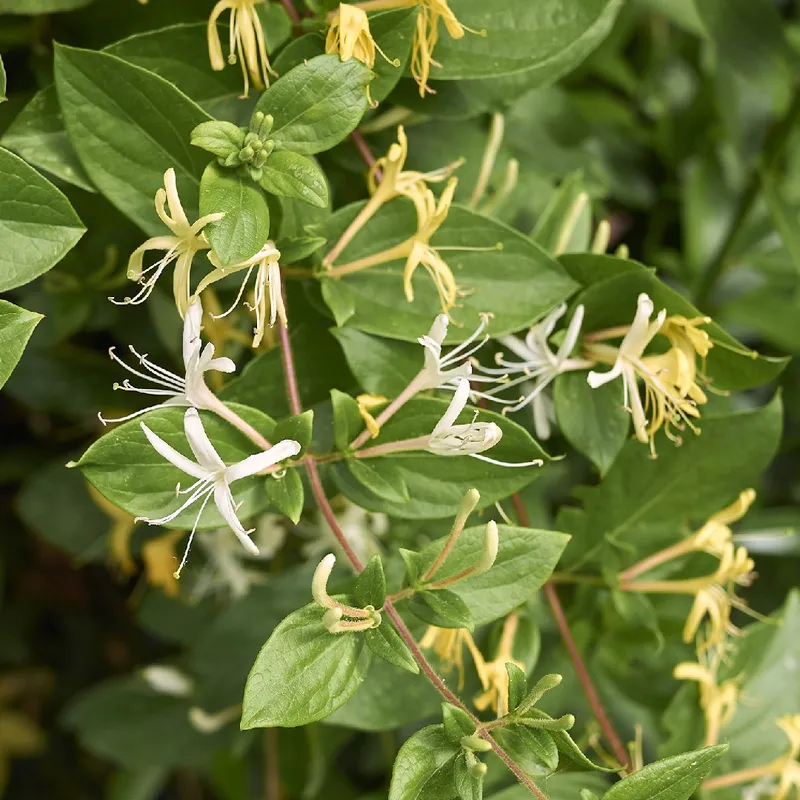 Buenos vecinos para la madreselva: Lila, grosellero negro, ciruelo, agracejo, saúco negro, escaramujo, espino blanco, álamo temblón, abeto, arce, enebro, grosellero espinoso, cualquier calabaza.