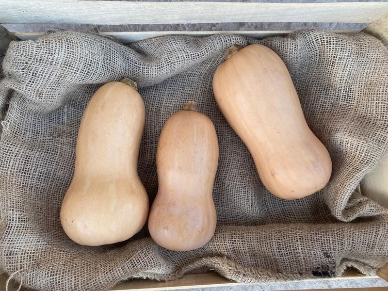 Los frutos tienen una curiosa forma parecida a una pera, que se han vuelto bastante populares recientemente entre los jardineros. El cuello de la calabaza es débil, y se ensancha hacia arriba. Tienen un tamaño mediano, pesando normalmente entre 1 y 1,5 kg, siendo común un peso de 1,2 kg. La superficie es lisa, con un suave tono cremoso.