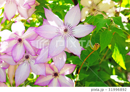 La floración de las clemátides japonesas comienza a finales de temporada, usualmente en junio, y se alarga hasta octubre. La abundancia de flores es notable, desarrollándose en los brotes más recientes. Una característica distintiva de esta variedad es su capacidad de florecer múltiples veces en una misma temporada.
