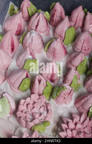 Se trata de una planta de forma esférica y crecimiento bajo, alcanzando apenas 40 cm de altura. Las flores tienen un diámetro de 4 cm, presentando una inflorescencia de tonalidad rosada y textura terrosa. Aunque la planta es sencilla, su fragilidad y compacto diseño la convierten en una opción decorativa rica y atractiva.