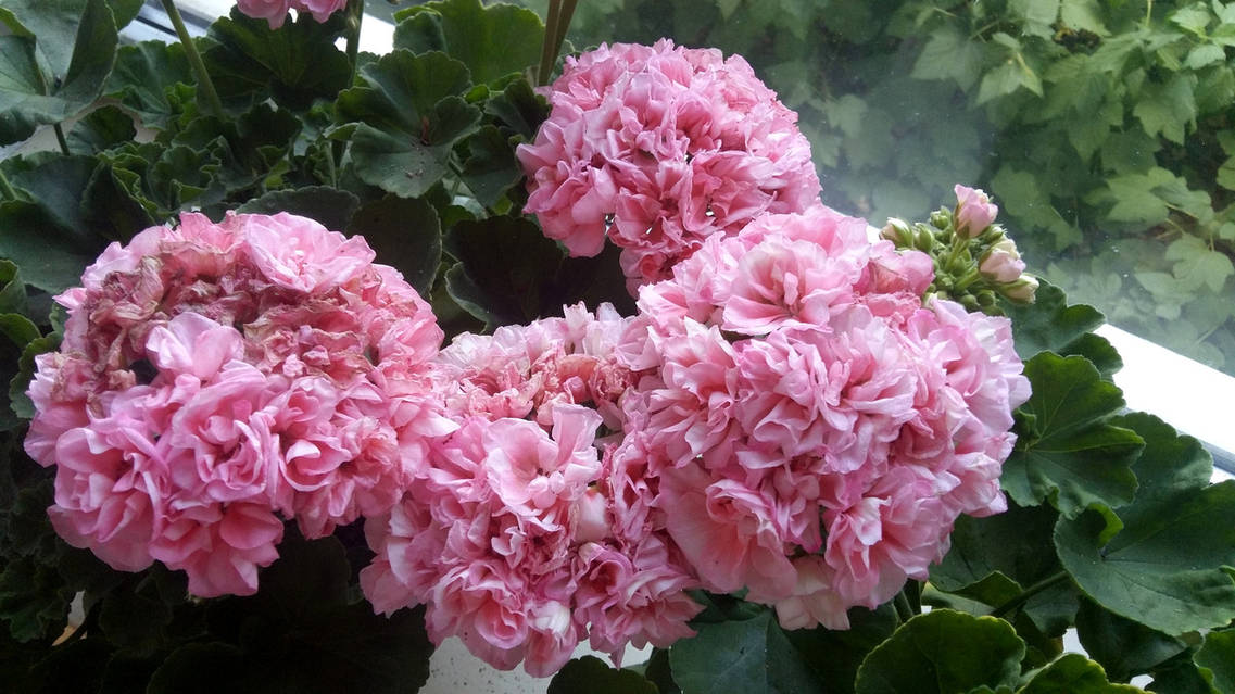 El cuidado de la planta incluye un riego adecuado, fertilización regular, eliminación de las flores marchitas y prevención de enfermedades. Los pelargonios cultivados en el jardín deben ser trasladados al interior durante el invierno. Además, se recomienda trasplante periódicamente a macetas más grandes, siendo la primavera la mejor época para realizarlo.