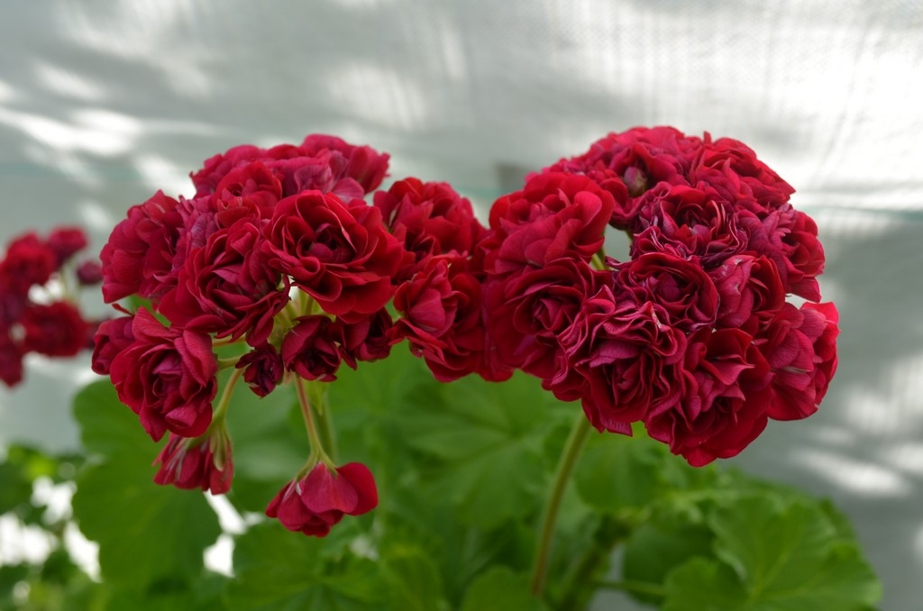 Esta variedad de pelargonio, conocida como Ungaric Appleblossom, presenta un crecimiento vigoroso, con hojas de un verde intenso, tallos erguido y una abundancia de flores.