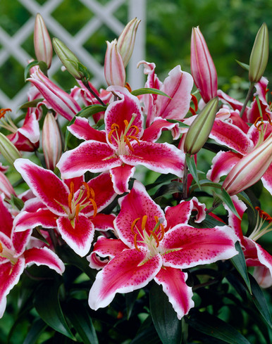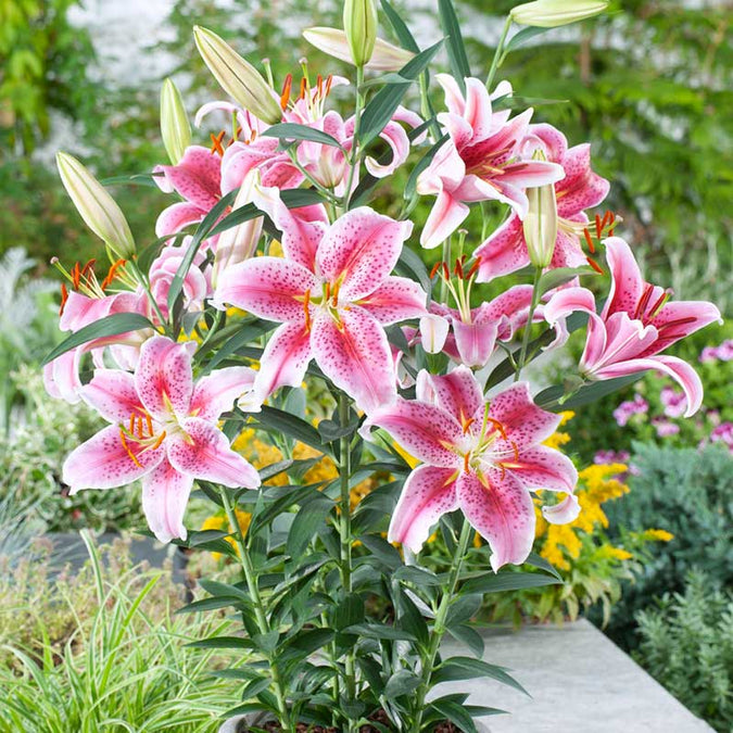 El Stargazer es un arbusto de tamaño medio muy hermoso, de unos 50-60 cm de altura. El diámetro de cada planta es de unos 30-40 cm. El arbusto es erguido, fuerte y no decae.