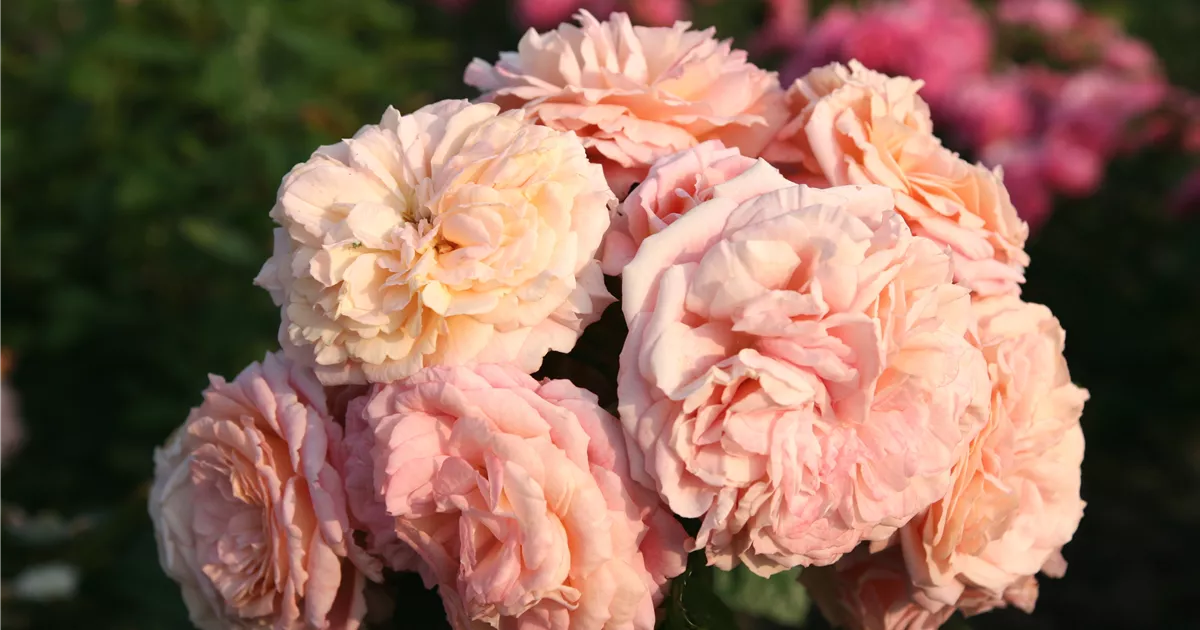 Las rosas Amaretto pertenecen a la categoría de rosas de floración abundante. El periodo de floración también es largo, ya que comienza en junio y no termina hasta septiembre, ofreciendo un despliegue continuo de color y fragancia durante toda la temporada. Los capullos tienen forma de copa elegante y los pétalos exhiben un delicado color rosa pálido que evoca sofisticación y romanticismo. Las rosas son terrosas, en forma de copa, creando una apariencia clásica y atractiva. Cada flor se compone de entre 40 y 60 pétalos, lo que les confiere una textura rica y una forma voluptuosa. El diámetro de las flores no supera los 6-7 cm, lo que las hace ideales para ramos y arreglos florales delicados. Tienen una agradable fragancia con notas frutales y florales brillantes, que añade un encanto sensorial a su belleza visual.