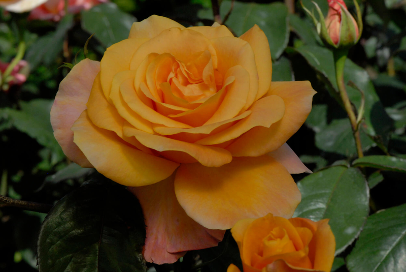 Las clemátides, lirios, geranios y azucenas complementan perfectamente a las rosas de color naranja albaricoque. Asimismo, un fondo verde y esmeralda, ya sea de césped o de coníferas perennes (como tuyas enanas o enebros), resaltará aún más la belleza de estas flores.