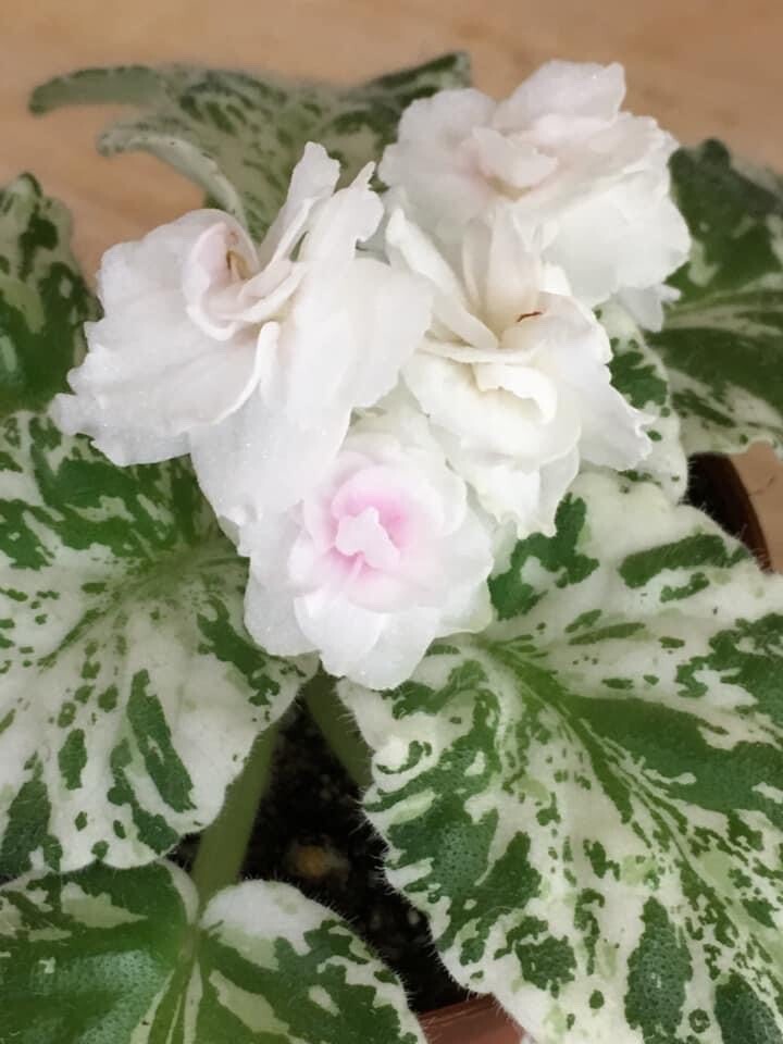 La Violeta en cuestión presenta una roseta típica con follaje denso de un verde oscuro, y sus flores son blancas con dibujos en un brillante tono rosa. Laudada como AV-Arbutus snow, esta variedad se caracteriza por sus flores con forma estelar.